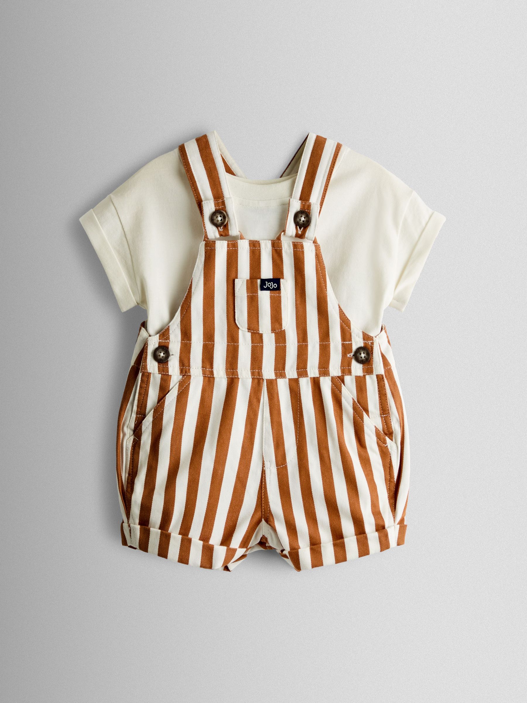 Tan Brown Stripe 2-Piece Twill Dungaree Set & T-Shirt