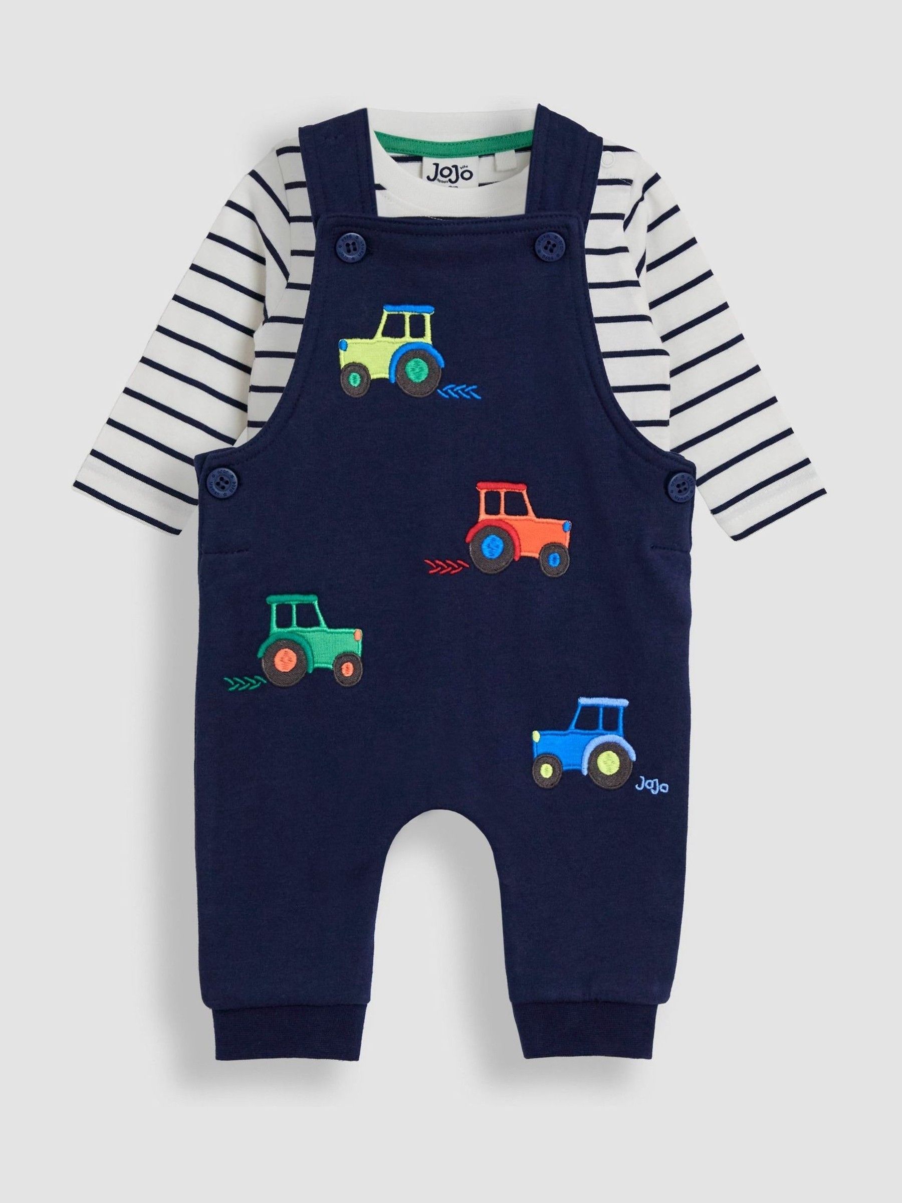 Navy Blue Check 2-Piece Tartan Dungarees & Body Set