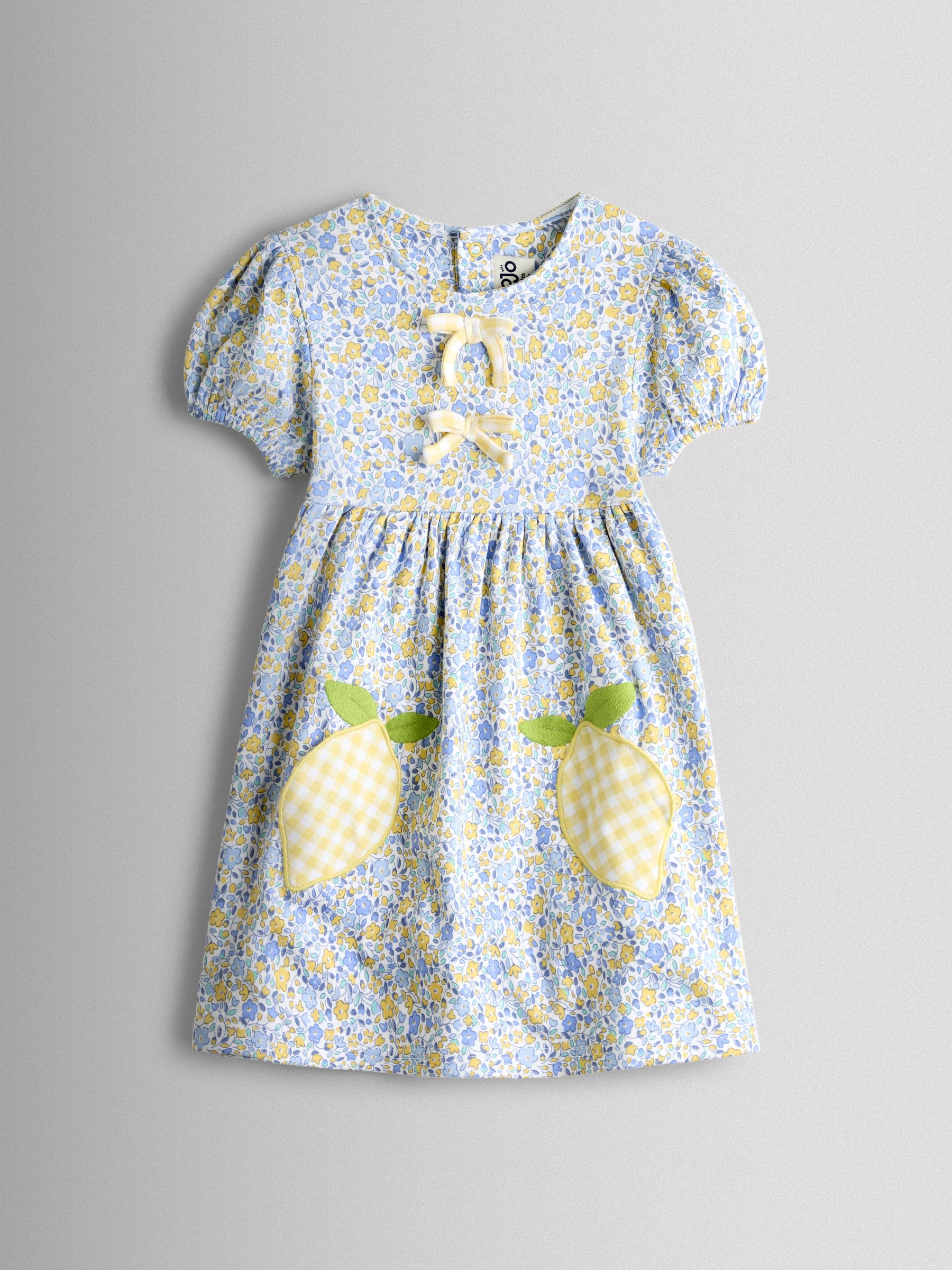 Yellow Lemon Appliqué Puff Sleeve Button Front Dress