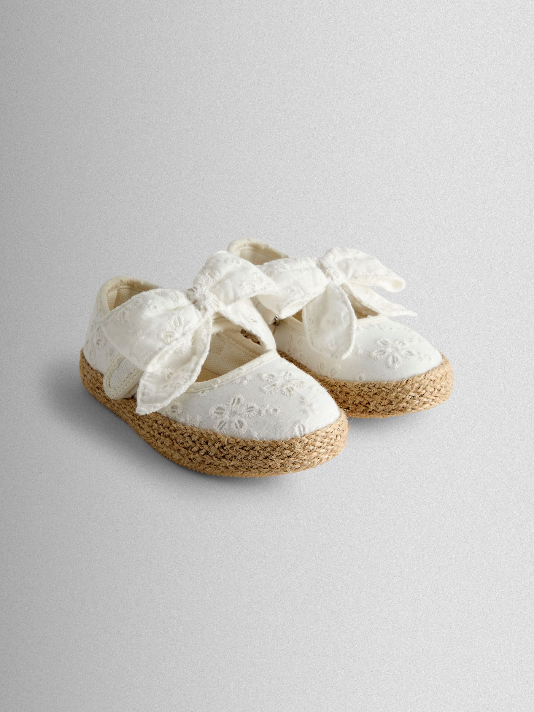 White Broderie Bow Strap Ballet Pumps
