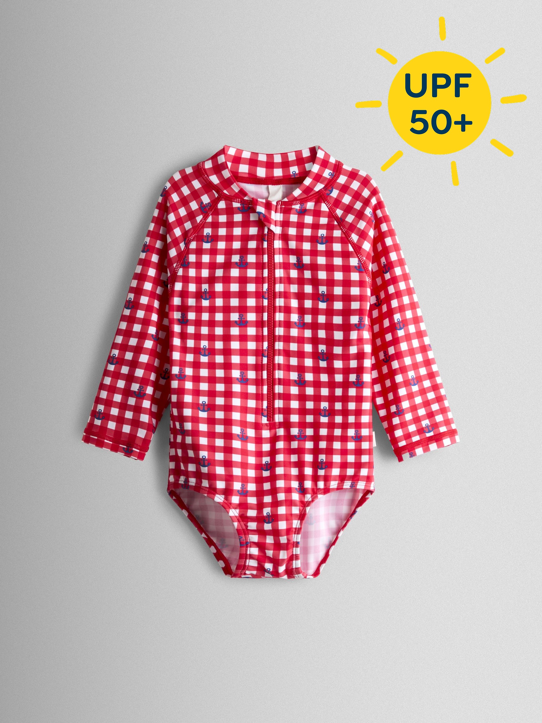 Red Gingham Nautical Long Sleeve Sunsafe Swimsuit