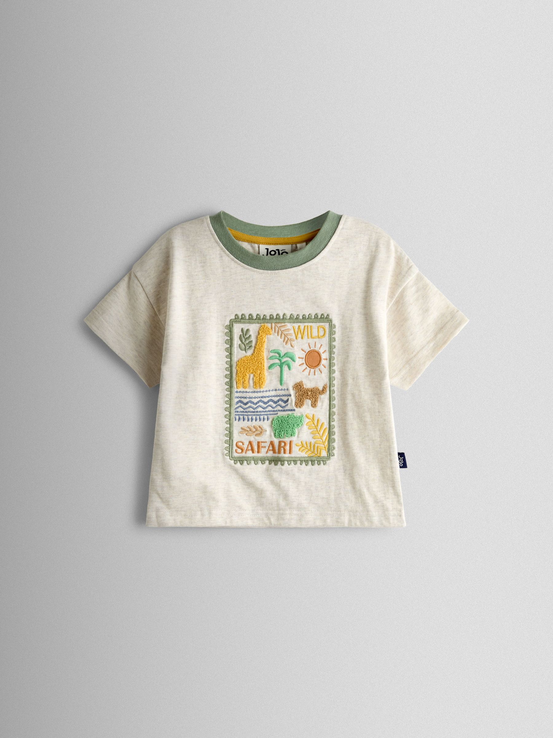 Khaki Green Giraffe Pocket Appliqué T-Shirt