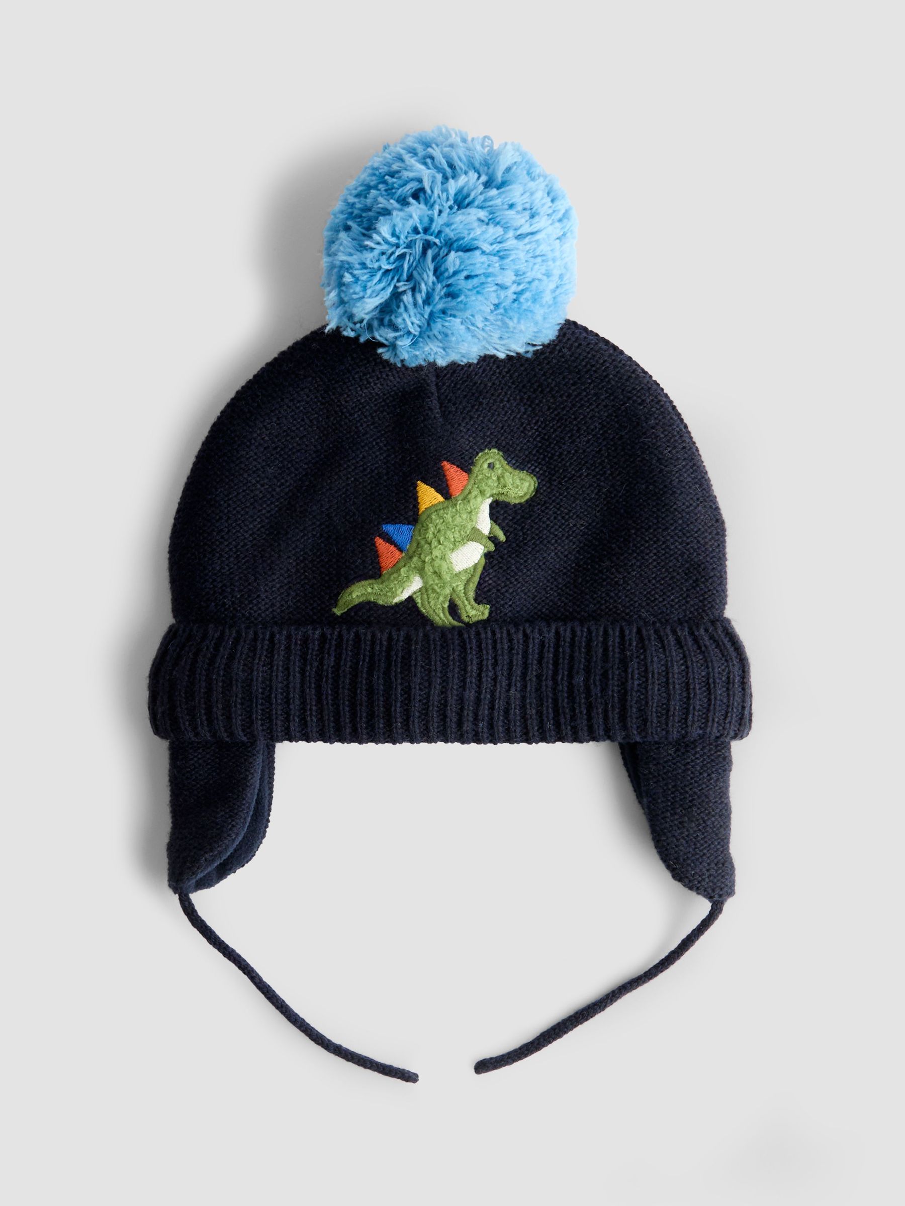 Navy Blue Dino Cosy Pom Pom Rib Hat