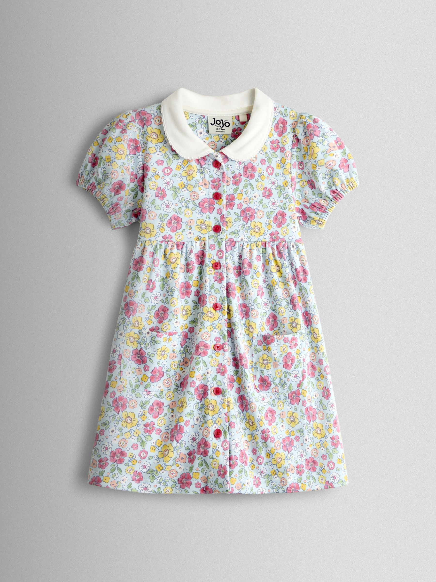 Pink Daisy Appliqué Button Front Dress