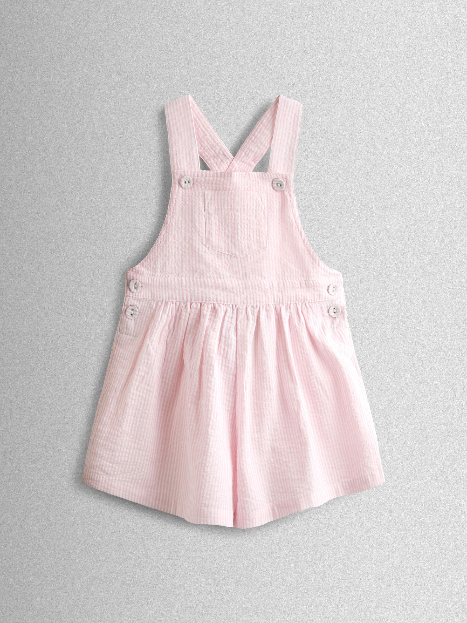 Pink Seersucker Stripe Dungarees & T-Shirt Set