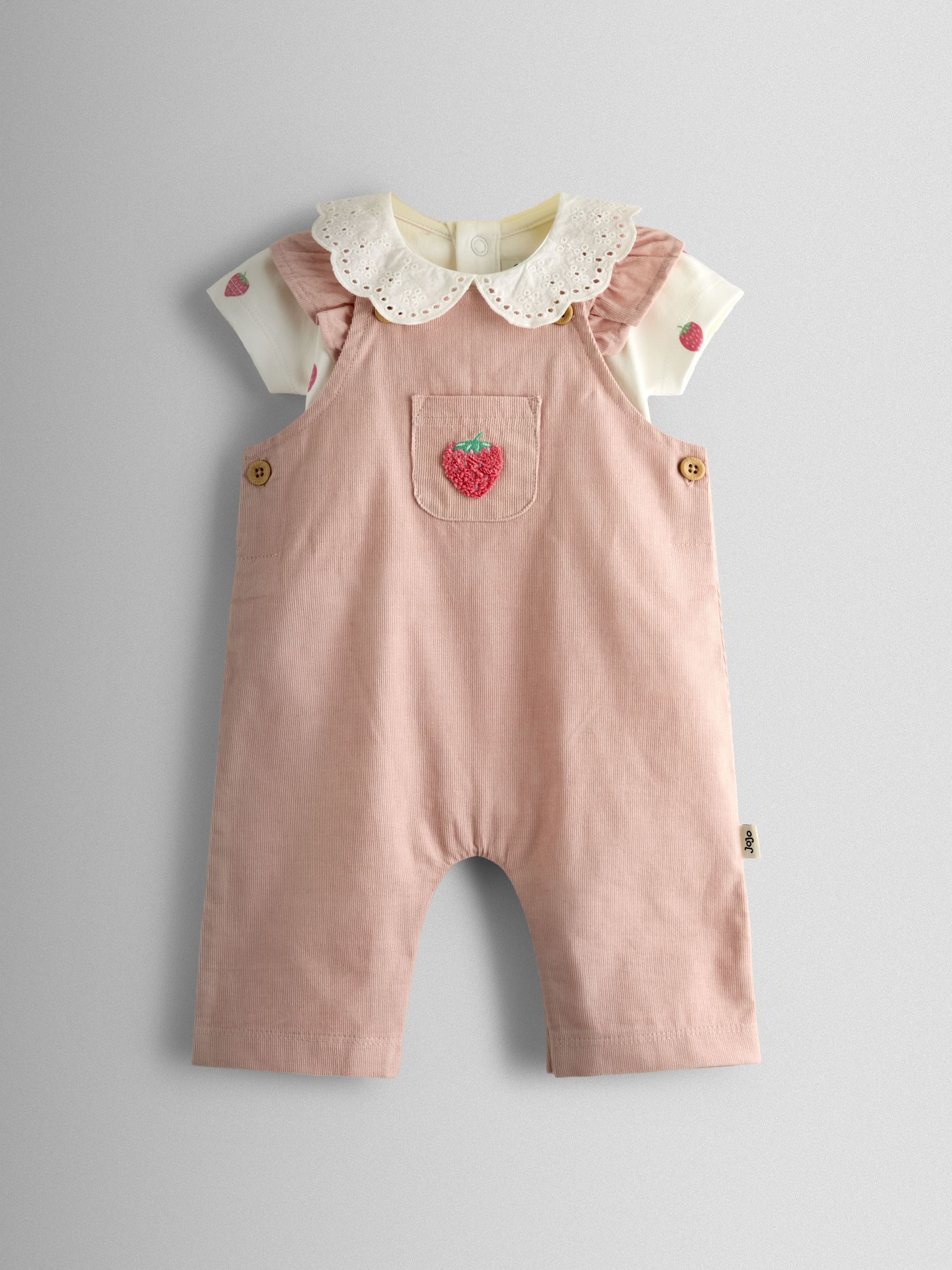 Pink Strawberry Dungaree & Body Set