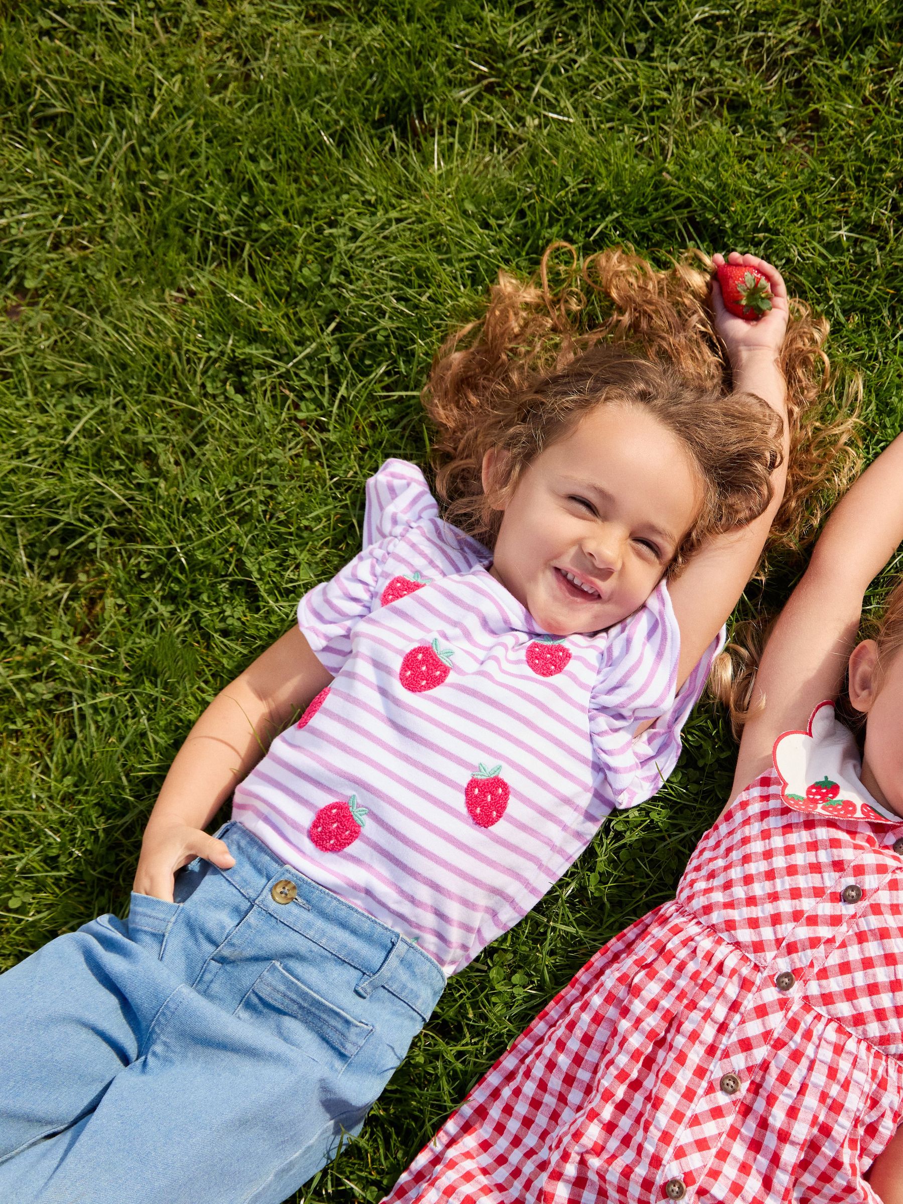 Cornflower Blue Strawberry Appliqué Stripe Top