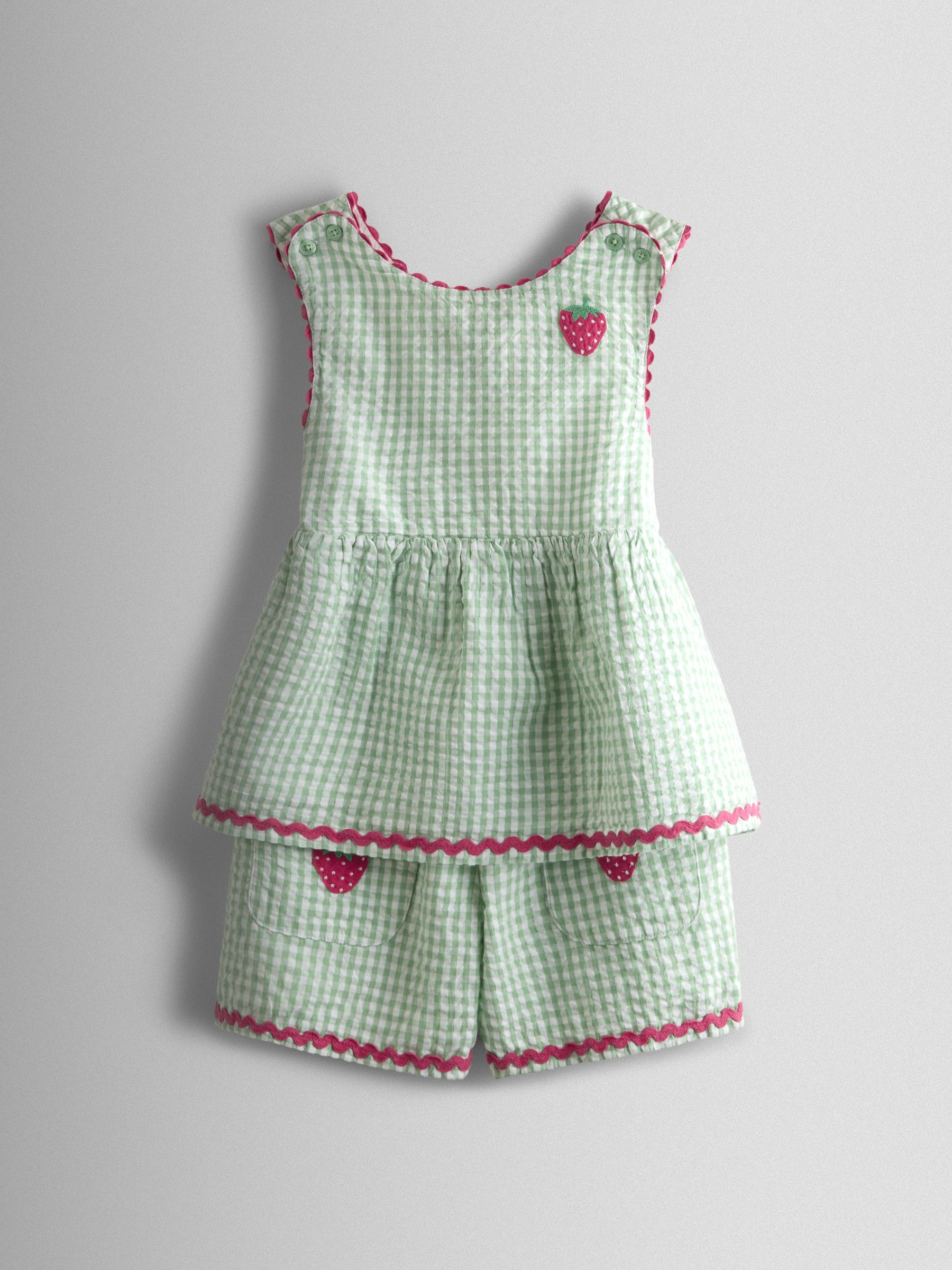 Green Gingham Strawberry Cross Back Appliqué Top & Short Set