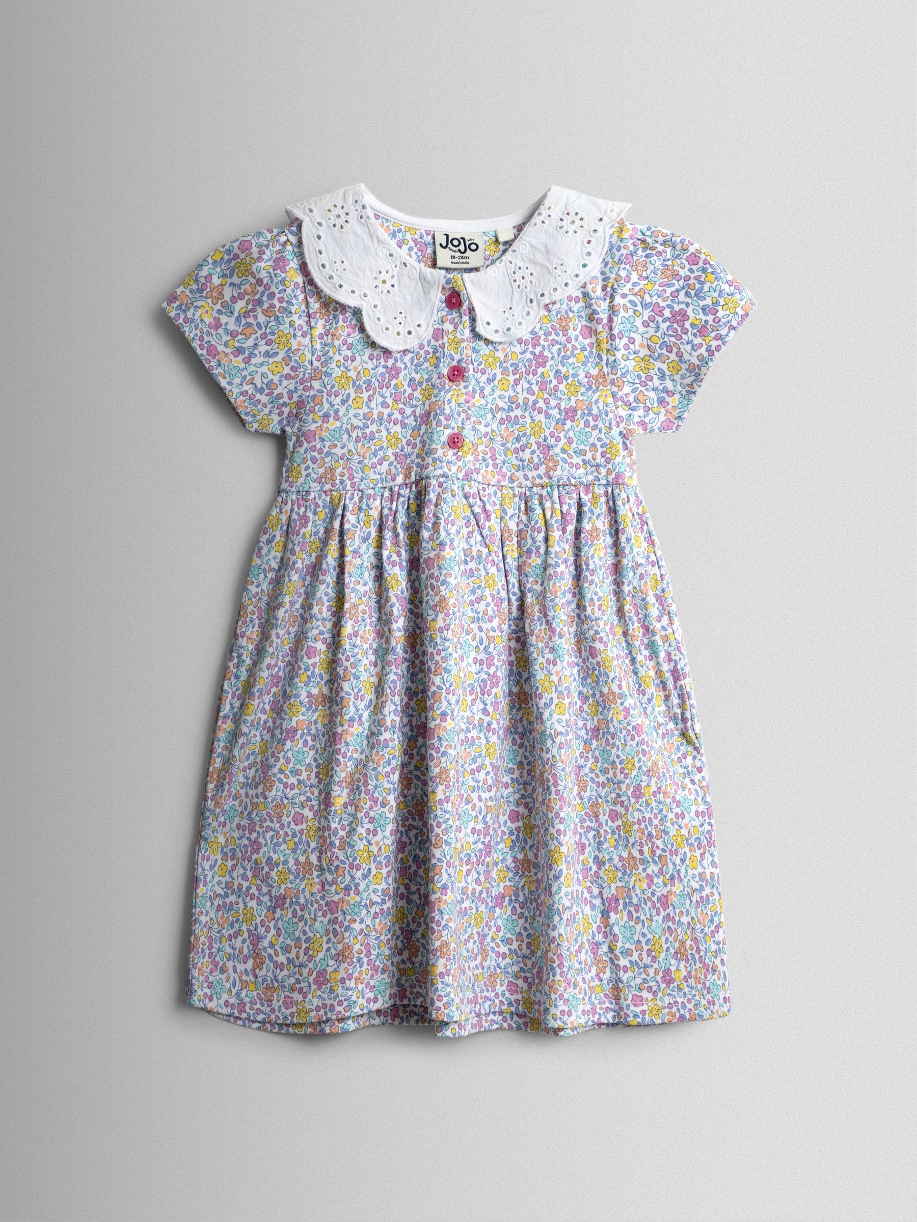 Blue Ditsy Floral Collared Smocked Baby Dress