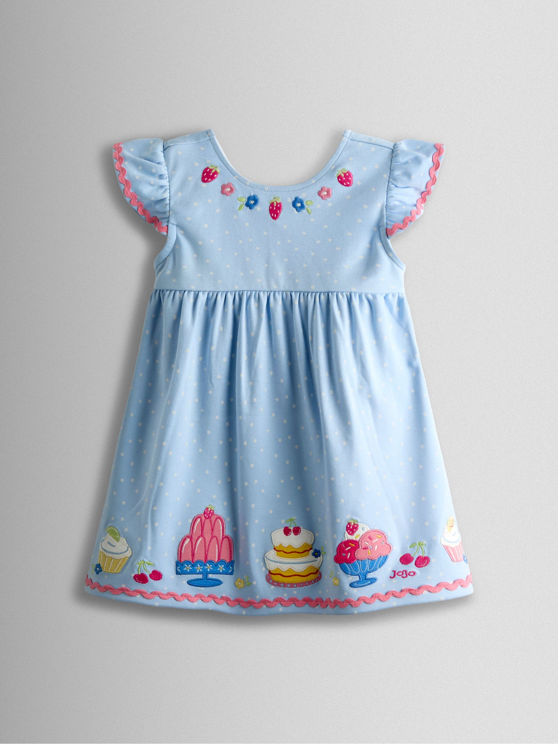 Light Blue Cake Appliqué Flutter Sleeve Dress