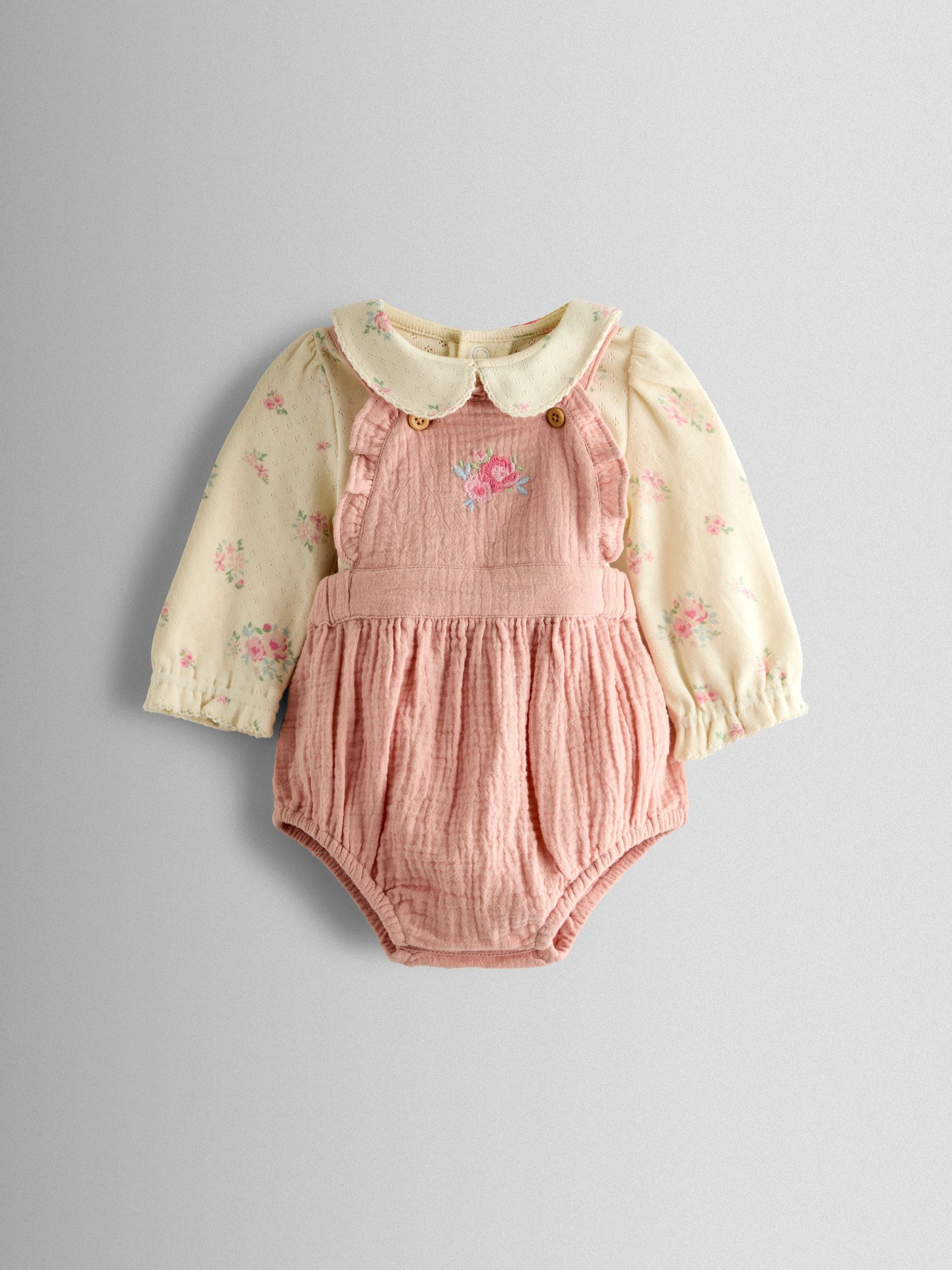 Pink Floral Bubble Dungaree and Body Set