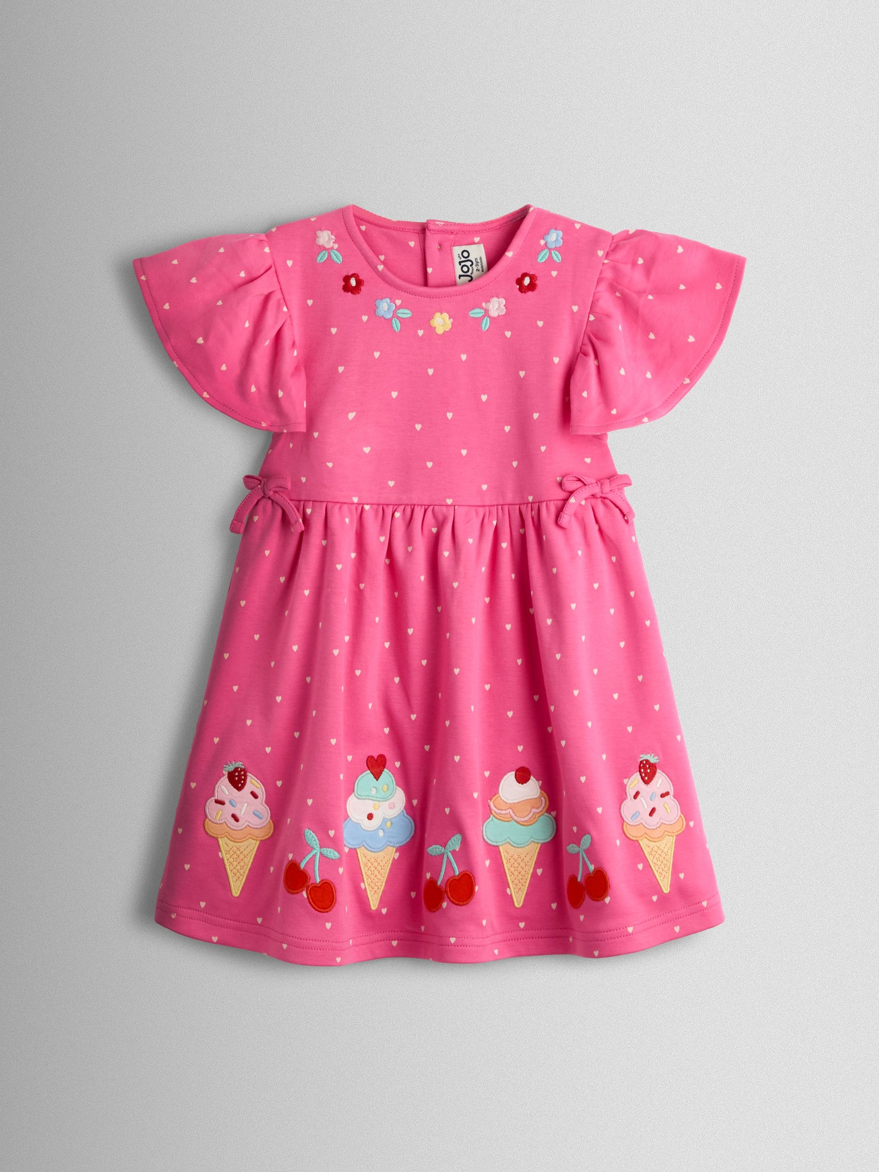Fuchsia Pink Ice Cream Appliqué Flutter Sleeve Dress