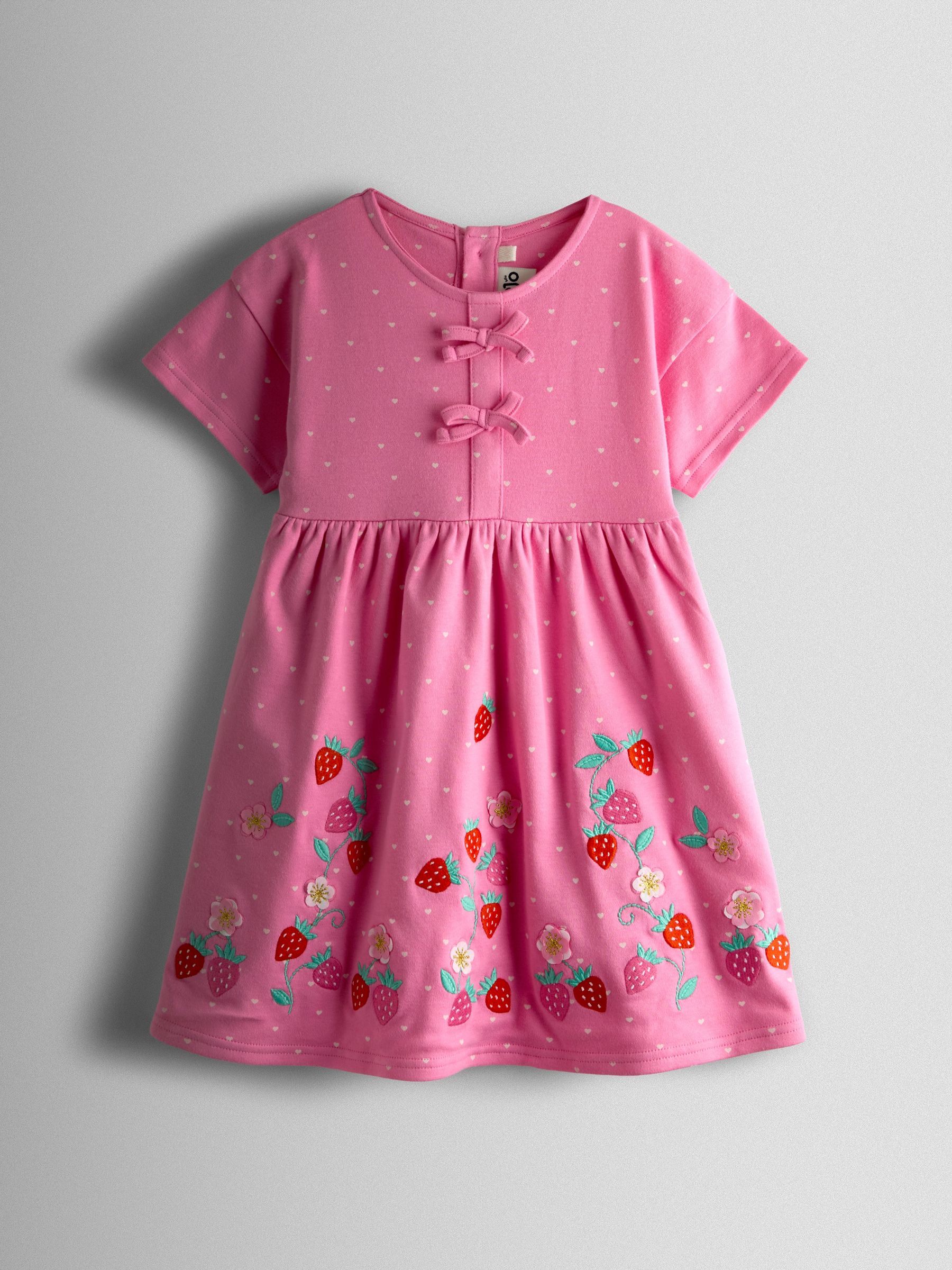 Bright Pink Daisy Frill Shoulder Embroidered Dress