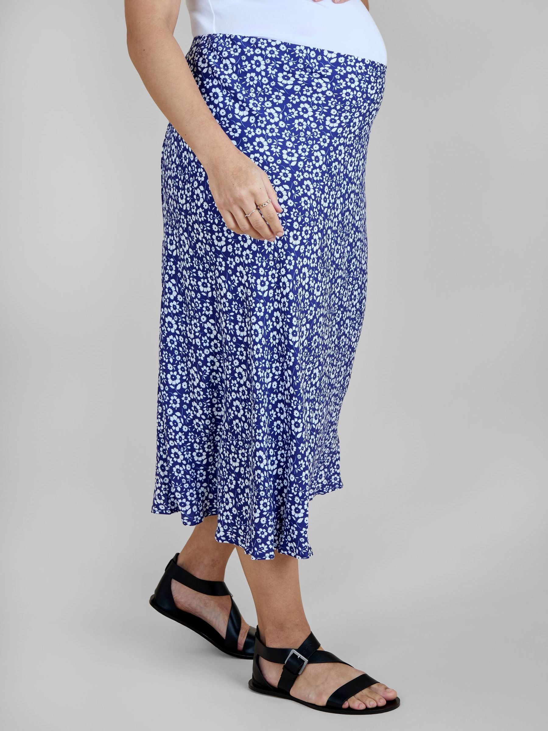 Black Floral Maternity Midi Skirt