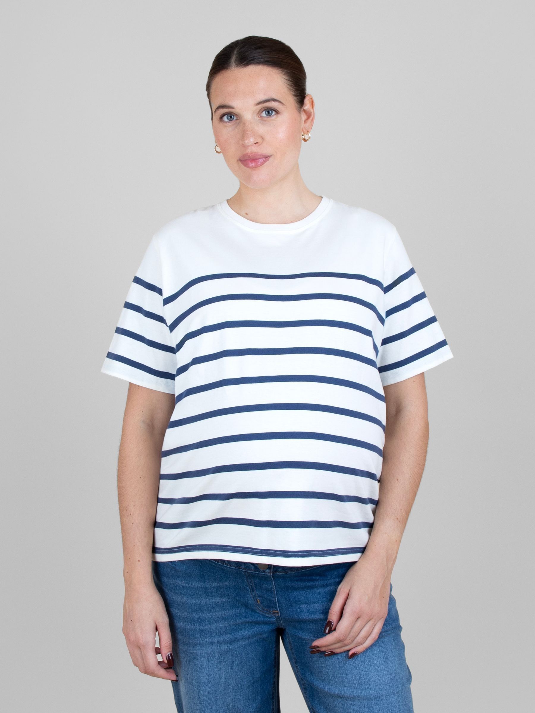 Navy White Stripe Boyfriend Cotton Maternity T-Shirt