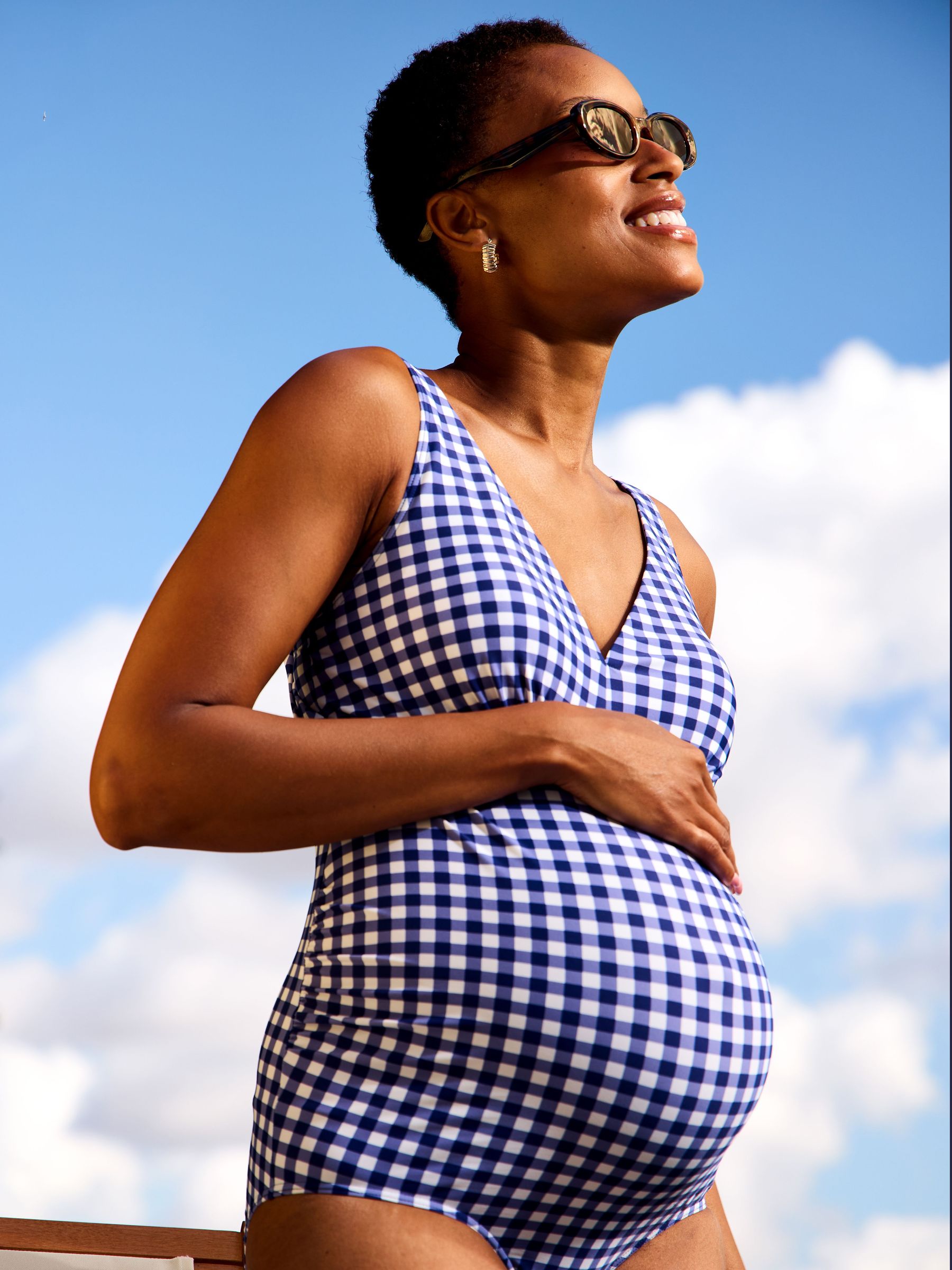 Navy Gingham Sleeveless V Neck Maternity Swimsuit