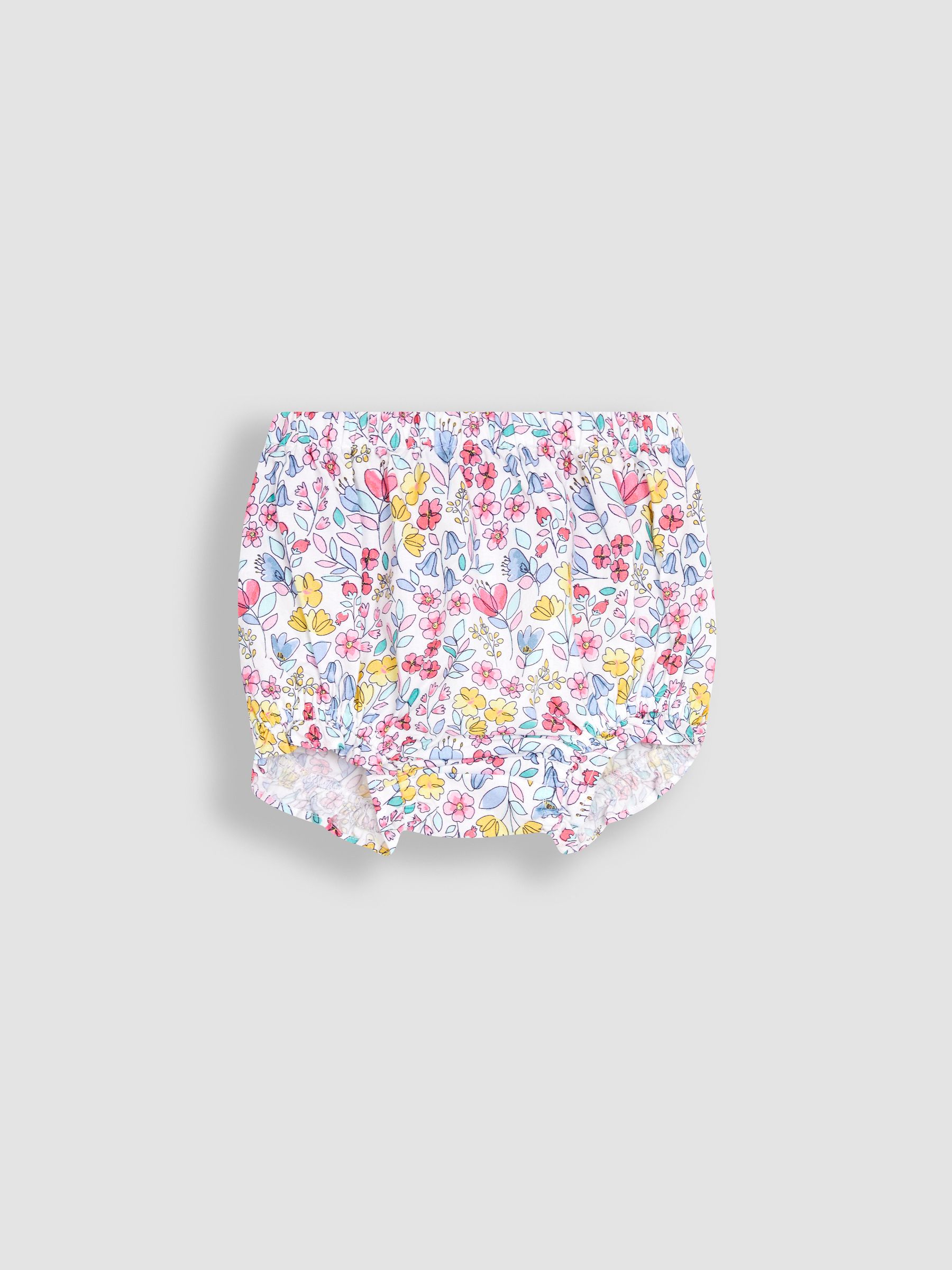 Swing, swish and twirl at picnics and parties in this adorably detailed ditsy dress. The scattered meadow flower print adds a pop of colour to make those spins and skips extra bright. The fitted smocked chest gives it shape and movement so little ones will stay comfy, whatever they get up to. For little crawlers, finish the look with matching knickers to hide their nappy.