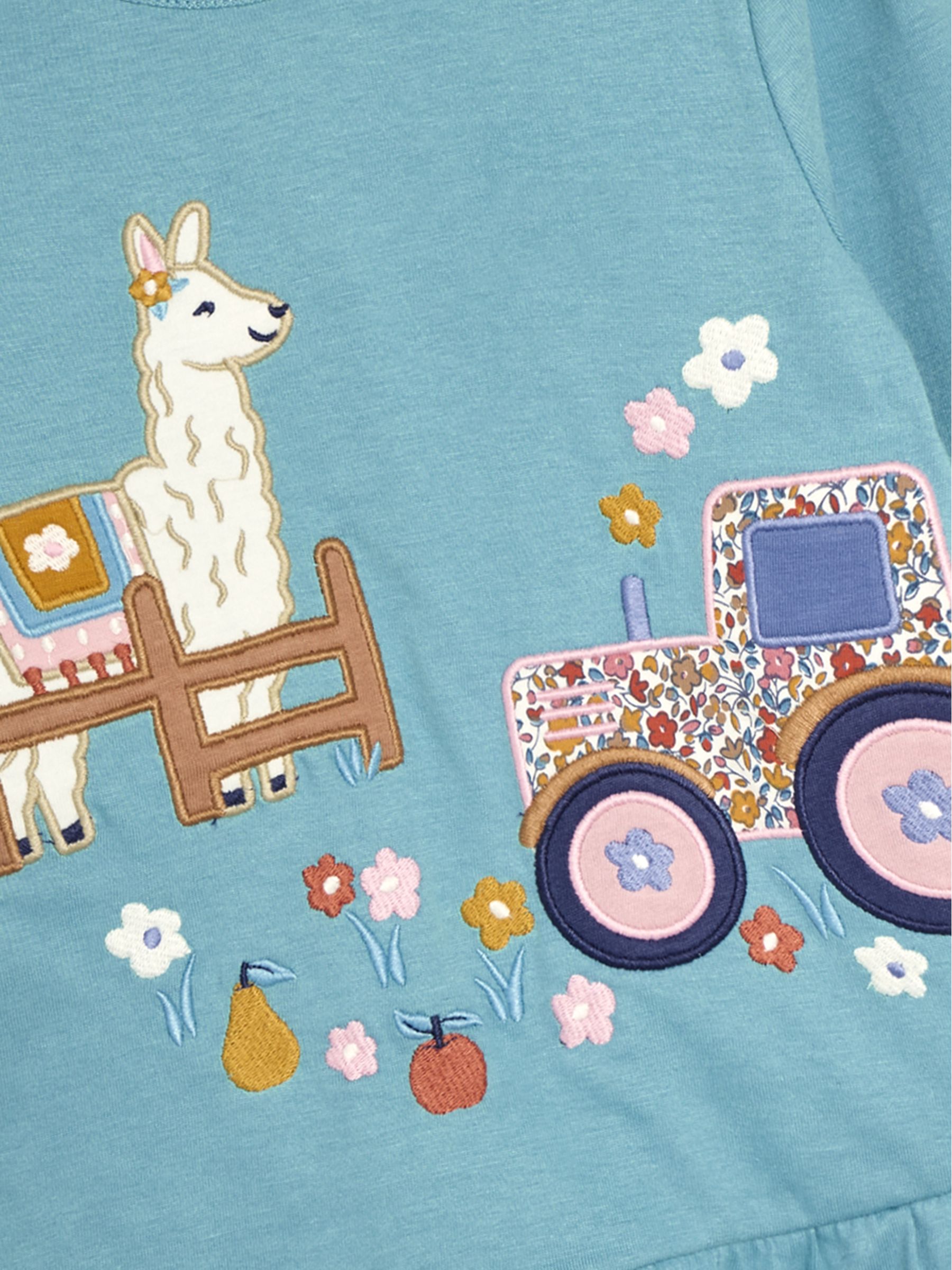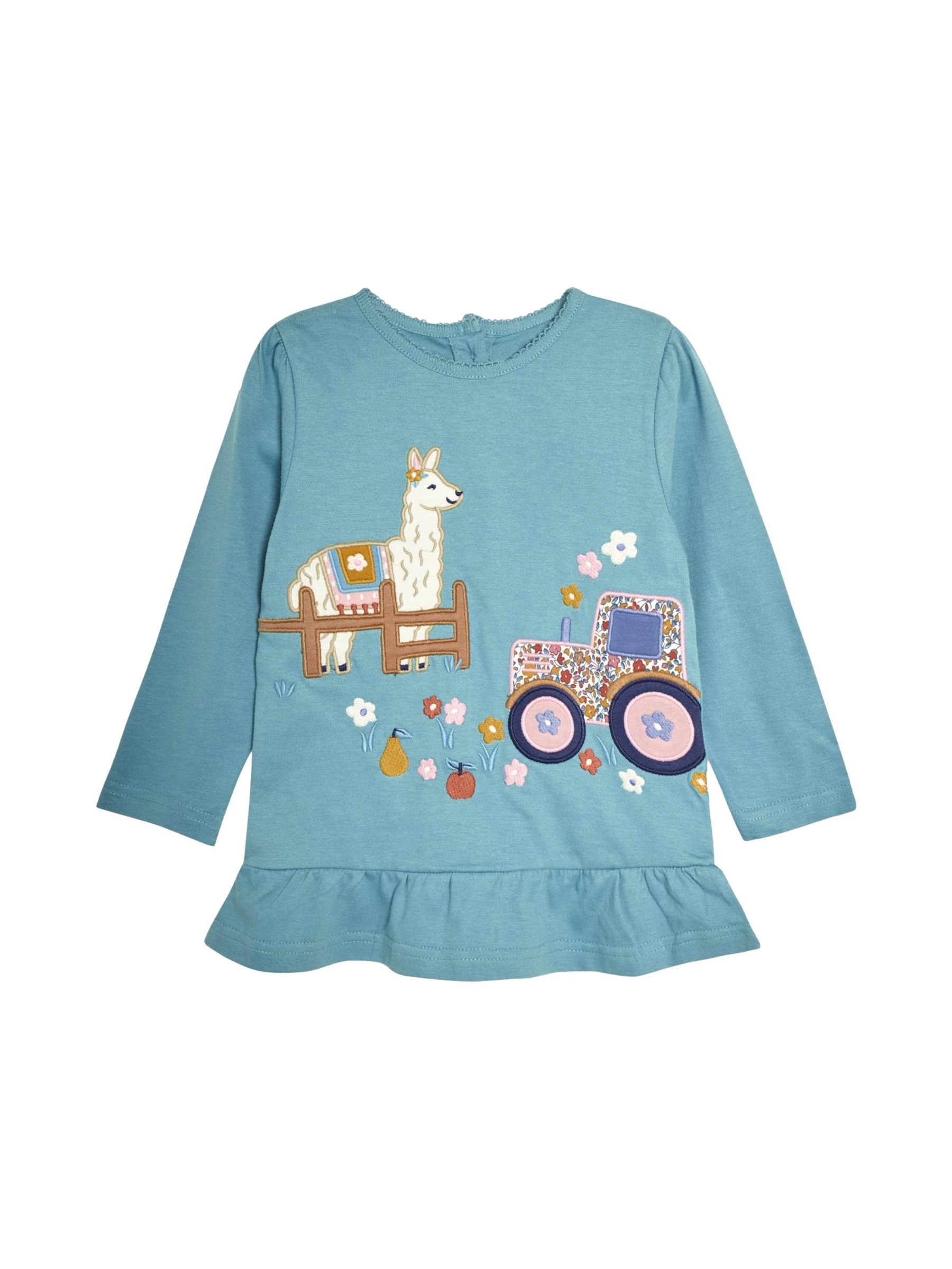 Autumnal days have never looked so llama drama-free with this Appliqué Tunic Top. Featuring a tractor, llama, fruits and florals, they’ll be ready for golden leaf-kicking days in no time. A frilly tunic hem adds charm to this everyday top, while long sleeves and cosy cotton make it super comfy for autumnal activities. Just add leggings! Tunic Appliqué llama and tractor print Long sleeves Button back opening Floaty hem 100% Cotton Machine washable
