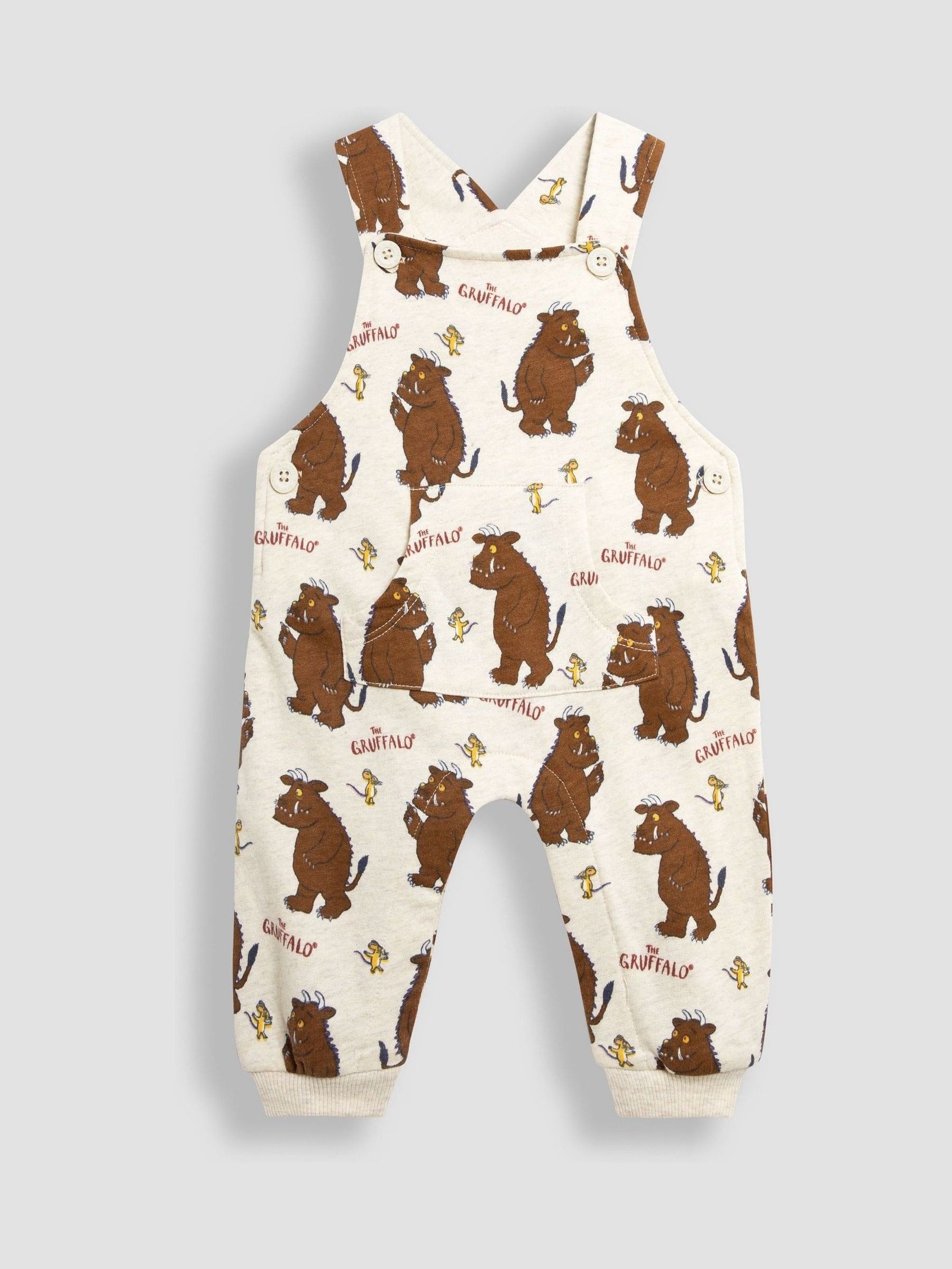 Oh, help! Oh no! It's a Gruffalo Straight from the family's favourite story, The Gruffalo fans will feel comfy and cosy for any big adventure in this dungaree set. Featuring an all-over Gruffalo print dungaree and a classic navy striped long-sleeve shirt, the dressing will be easy peasy with adjustable straps and side buttons. They won't want to take it off!