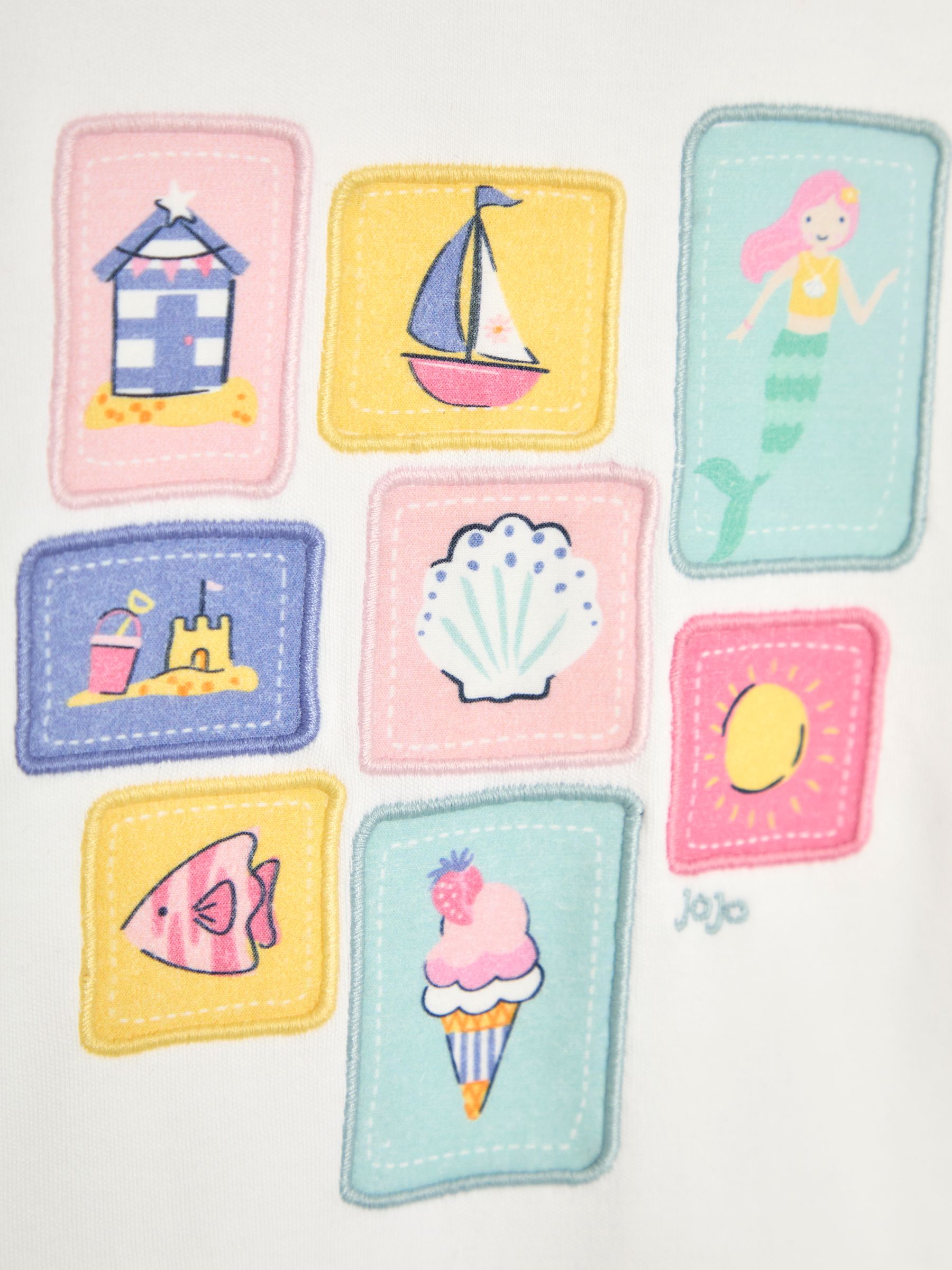 White Seaside Appliqué T-Shirt & Shorts Set 2 Piece